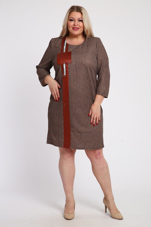 Женское платье прямого силуэта из ткани Сандра с вставкой из стрейч-кожи. Идеальный выбор для стильных женщин: от 54 до 60 размера.