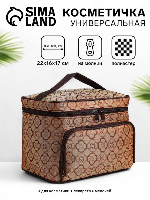 • Косметичка на молнии, с зеркалом, с карманом, бежевая