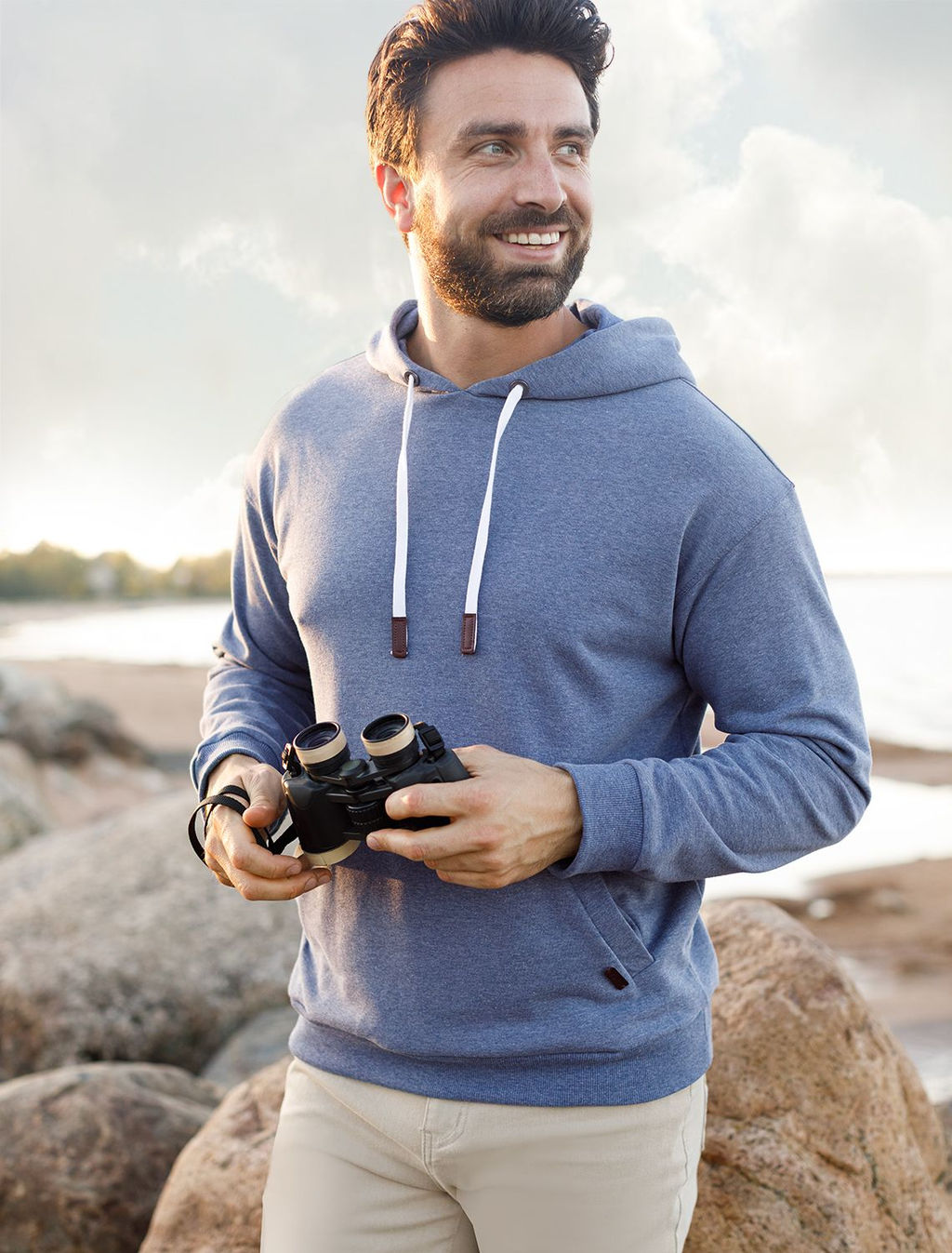Худи выполнено из эластичного футера трехнитки-петля с эффектом меланж. Лаконичная модель с капюшоном и двумя боковыми карманами дополнена хлопковым шнуром с наконечниками из эко-кожи. Наличие эластана в составе гарантирует комфорт и формоустойчивость. Изделие не сковывает движений. В теплое время года можно использовать вместо верхней одежды.­