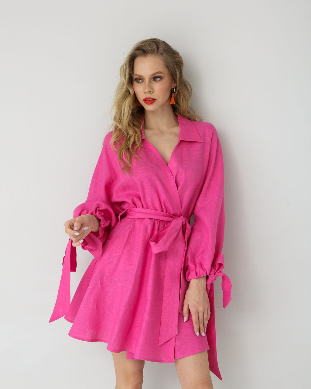 Внесите яркие краски в свой гардероб с этим восхитительным льняным платьем в сочном оттенке фуксии. Изготовленное из 100% натурального льна, оно станет настоящим украшением вашего летнего гардероба, привнося в каждый образ энергию и жизнерадостность.