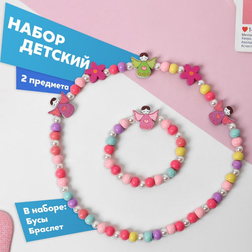 Набор детский 2 предмета: бусы, браслет «Выбражулька», ангел, цветной