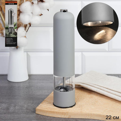 Мельница для специй и соли 22 см электрическая Soft Touch с подстветкой / BS-35953 /уп 50/ серая