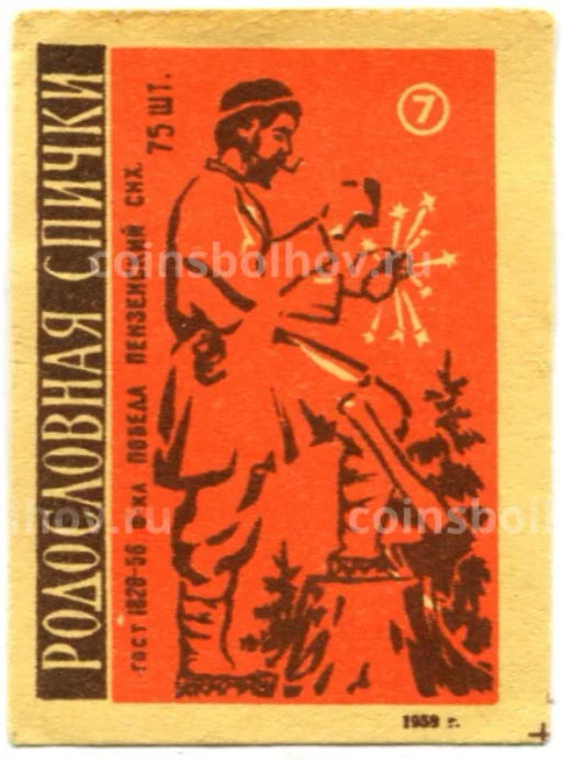 Этикетка спичечная Родословная спички №7 фабрика Победа