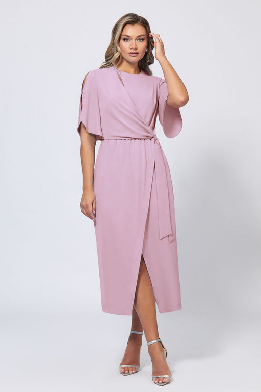 Красивое платье с имитацией запаха идеально подойдёт для создания стильного, нарядного образа. Для пошива модели использовали материал на основе мягкой и приятной к телу вискозы с полиэстером.Рукава-воланы с красиво мерцающей стразиной и мягкие драпировки делают силуэт изделия очень лёгким и воздушным , а каплевидный вырез с пуговицей-стразиной и фигурный разрез по низу придают образу женственности и сексуальный штрих. Талия изделия акцентирована скрытой резинкой.­