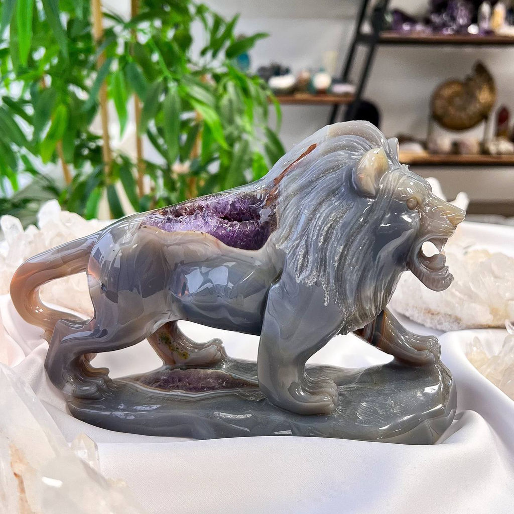 Лев резной из Агата с жеодой