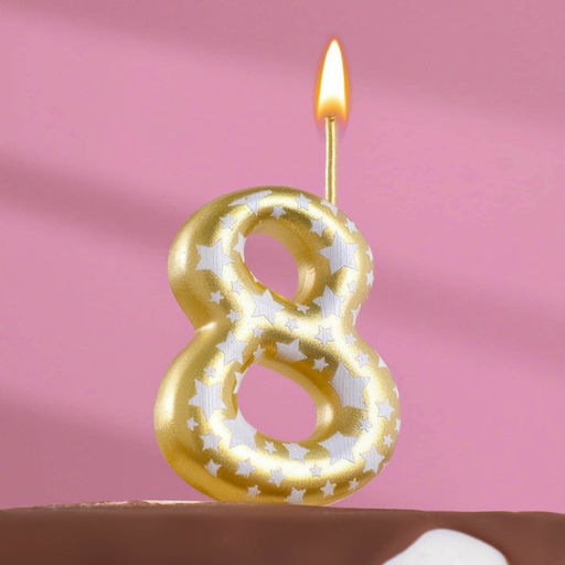 • Цена за 2 шт. Свеча для торта «Золотая со звездами», цифра 8, 5.5 см
