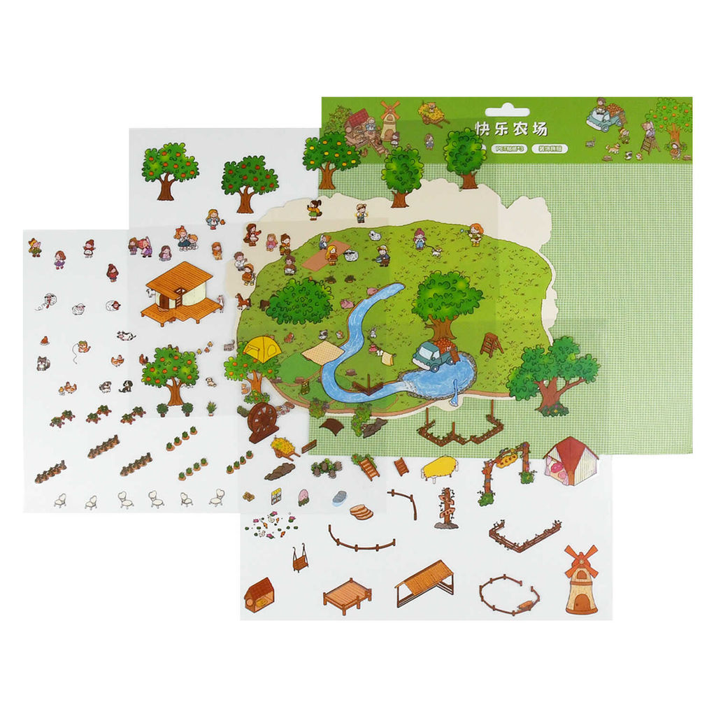Наклейки-румбокс д/создания миниатюрных сцен, 264х211 мм, арт. 73254 / 100 СЧАСТЛИВАЯ ФЕРМА (комплектность: наклейки (3 л.), поле д/наклеивания (1 л.), пинцет металлический; размер листа: 264х211 мм; материал наклеек: полипропилен; кол-во наклеек: 200+; цвет: зелёный; декор: полноцветная печать; индивидуальная упаковка: ПЭТ-пакет с европодвесом)
