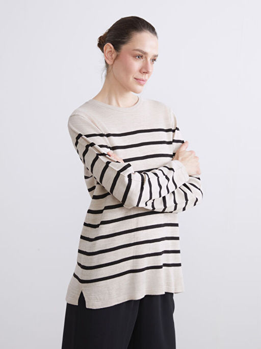 Bisiklet Yaka ?izgili Kad?n Triko Kazak
