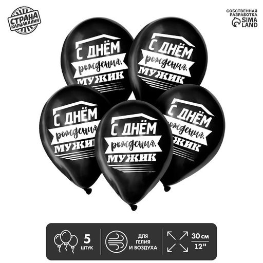 Цена за 2 шт. Воздушные шары латексные 12" «С днём рождения, мужик», 5 шт.