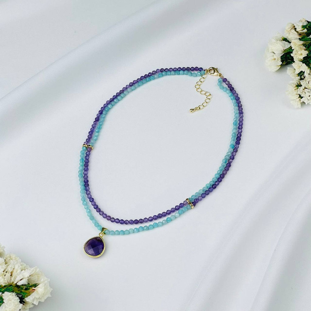 Колье двойное из Амазонита и Аметиста 38 см +