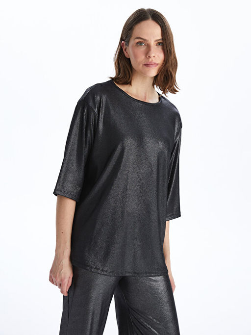 Bisiklet Yaka Parlak G?r?n?ml? Kad?n Bluz
