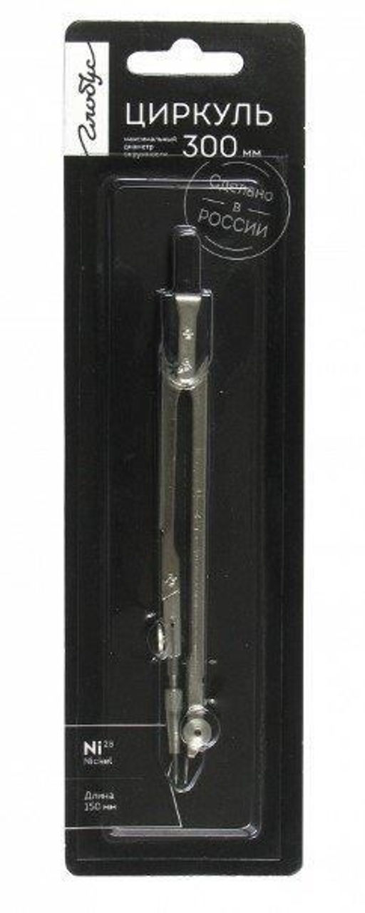 Циркуль GLOBUS ТЕХНИКА 155 мм металлический черный, в блистере с европодвесом