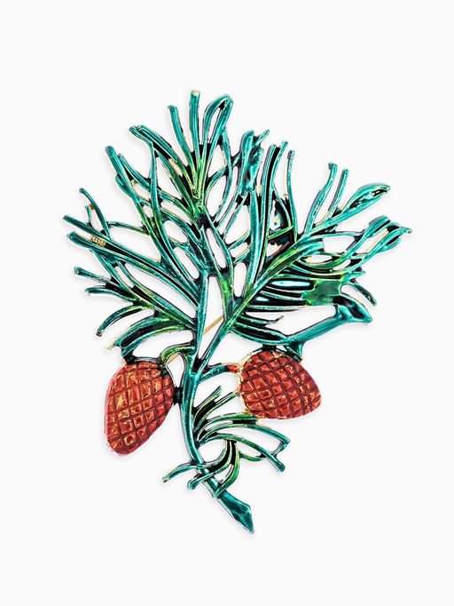 • Брошь "Кедровая веточка", цвет коричнево-зелёный в золоте