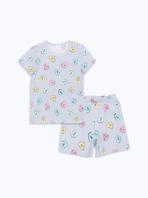 • Bisiklet Yaka Bask?l? K?z ?ocuk ?ortlu Pijama Tak?m?