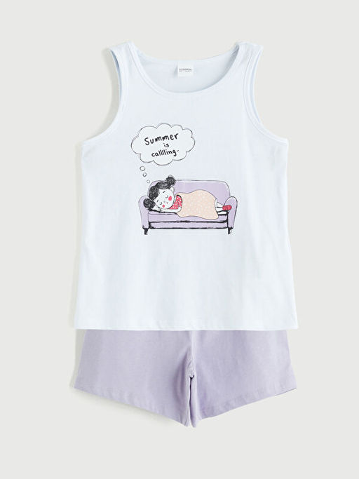 Bask?l? K?z ?ocuk ?ortlu Pijama Tak?m?