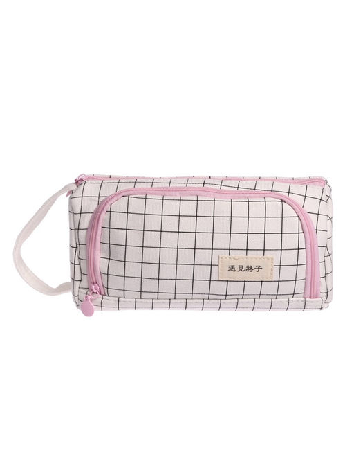 Пенал школьный Calligrata «Шотландка», мягкий, 2 отделения, 95×210×90 мм, объёмный с откидной планкой, с ручкой, бело-чёрный