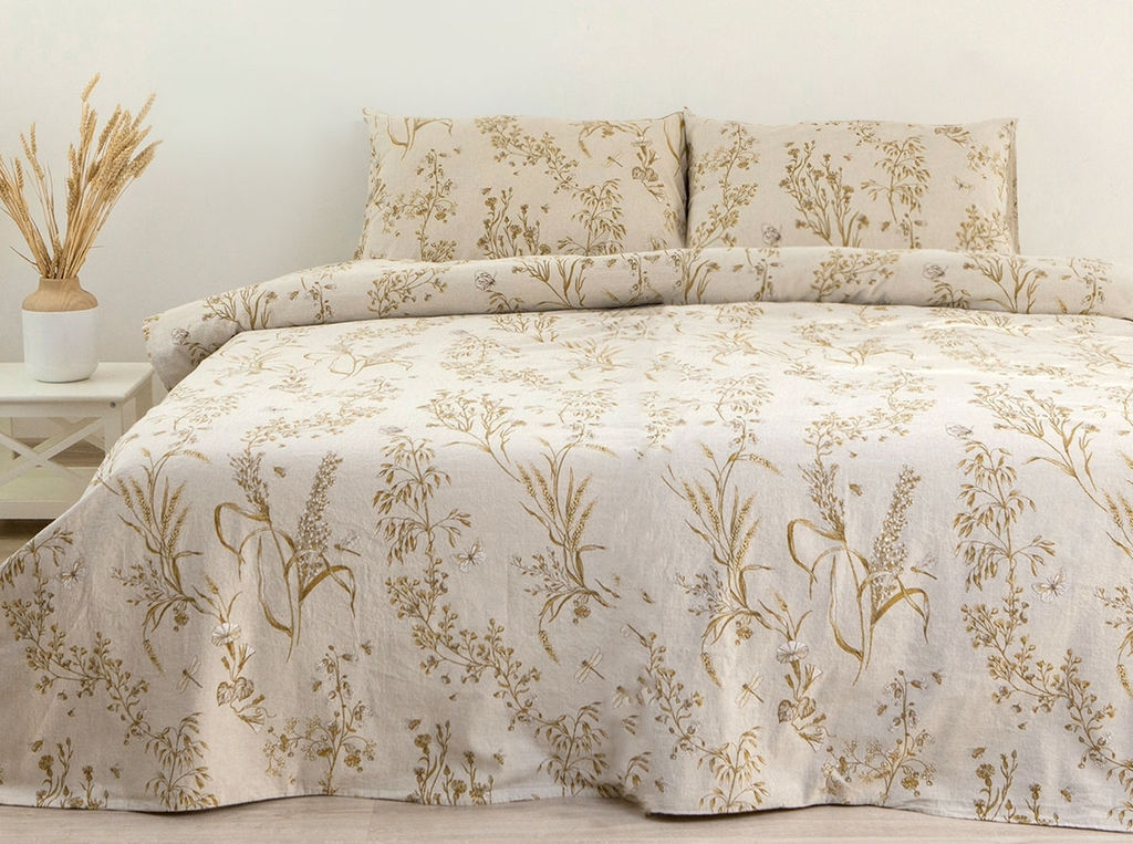 Размер общий: 2 спальный Артикул: 24С185-ШР/у/уп.кор. Тип ткани: Полулен Состав: 70% Хлопок, 30% Лен Вид оформления: Гладкокрашеная (Однотонная), Набивная (С рисунком) Пододеяльник, см: 175*215 Простыня, см: 200*240 Рисунок: 6325 Weadow Цвет: 1 Применение: Спальня Производитель: Беларусь Характер рисунка: Растительный Оттенок цвета: Натуральный льняной , Оттенки кремового, бежевого Упаковка: картонная коробка + плотный пвх пакет Тип простыни: без резинки Застежка: прорезь Комплектация: Наволочки 2шт, Пододеяльник 1шт, Простыня 1шт Тип изделия: Комплект постельного белья Наволочка, см: 70*70 - 2 шт Плотность, г/м?: 155