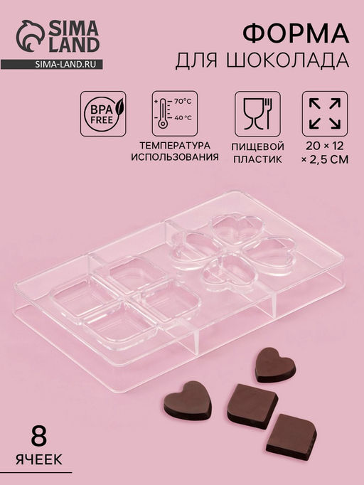 Форма для конфет и шоколада Мерси, 8 ячеек, 20?12?2.5 см, прозрачная