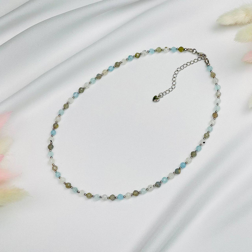 • Колье для "Скорпиона" из Лабрадора, Аквамарина и Лунного камня 38 см +