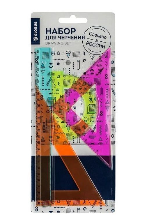 • Набор чертежный 4 предмета большой GLOBUS пластик тонированный ассорти, с европодвесом
