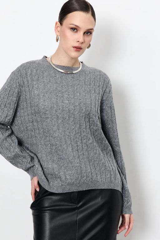 Этот джемпер свободного силуэта станет вашим любимым элементом гардероба. Изюминка образа косы, добавляющие фактуры и уюта. Асимметричный низ придает динамичности и легкости, а длинные втачные рукава завершают образ. Круглый вырез горловины, низ изделия и низ рукавов оформлены резинкой. Изделие выполнено из меланжевой пряжи.