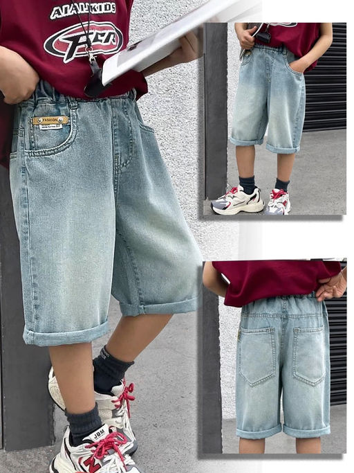 Удлинённые джинсовые шорты для детей, выполненные из хлопкового денима - прочной и износостойкой ткани, которая хорошо пропускает воздух и обеспечивает комфортную носку в жаркие дни. Они легко комбинируются с любой майкой или футболкой. Пояс на широкой, эластичной резинке, без молнии и пуговиц. Акцентные детали в виде искусственных потёртостей.