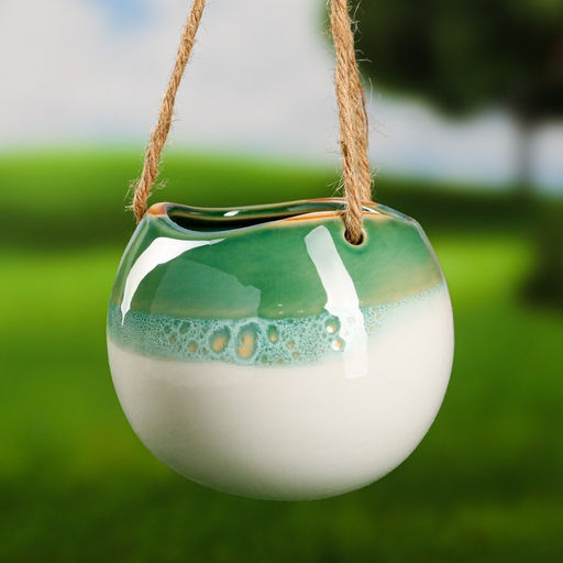 Кашпо для цветов «Круглое», 11×11×9 см, керамика, подвесное, зелёное, белое