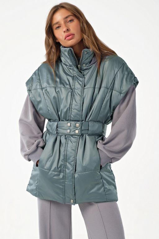 • Жилет утепленный оверсайз на молнии серо-зеленый