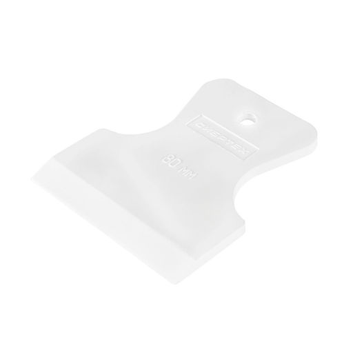 Шпатель из белой резины предназначен для заполнения межплиточных швов затиркой. Благодаря светлой резиновой поверхности он не повреждает плитку, поэтому подходит для работы даже с эксклюзивными облицовочными материалами. За счет ширины 80 мм инструмент может использоваться для обработки труднодоступных участков.