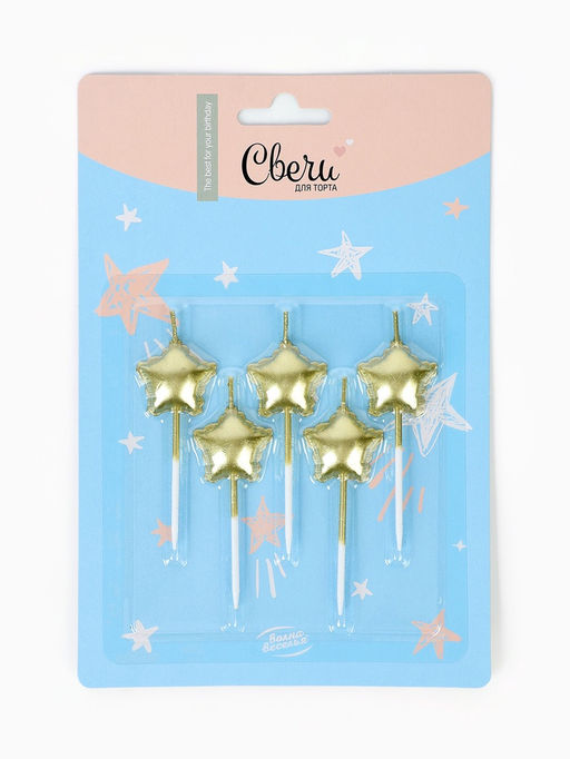Декоративные свечи - неизменный атрибут для украшения праздничного стола или интерьера. Загадочное свечение мерцающих огоньков подарит атмосферу волшебства, когда все желания сбываются, а мечты осуществимы.Одна из любимых традиций юбилейных событий и кульминация праздника для виновника торжества - коронное блюдо со свечами для именинника, когда феерия пламени поражает воображение и остается незабываемым воспоминанием.Высокое качество используемых материалов не влияет вкусовые качества блюд, а удобная упаковка помогает сохранять свечи при длительном хранении и транспортировке.Примечание: размер свечи указан с учетом держателя. Для кого: Для мальчика. Для кого: Для женщины. Для кого: Для девочки. В наборе, шт.: 5. Форма свечи: Звезда. Бесплатная доставка: Да.