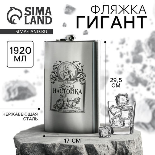 Фляжка ГИГАНТ «Авторская настойка», 1920 мл, серебристая