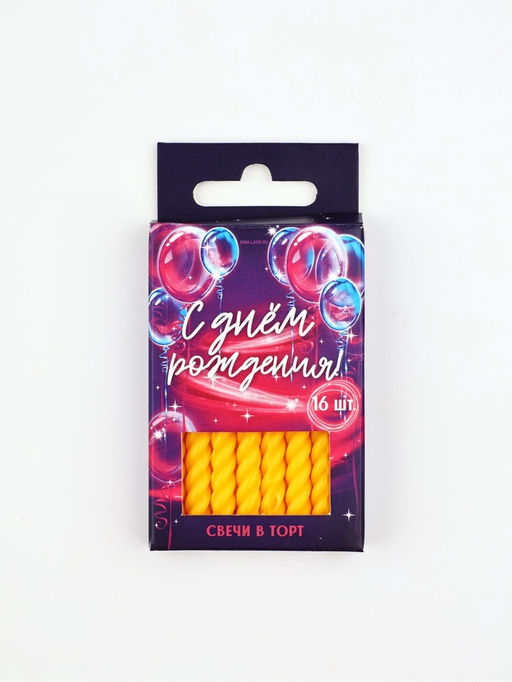 • Цена за 2 шт. Свечи для торта, желтые, 16 шт., 6.5×0.5 см