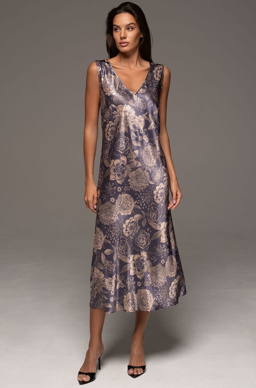 Классическая длинная сорочка Mia-Amore с вертикальными рельефами и широкими бретелями выполнена из принтованного смесового шёлка.70% натуральный шелк, 25% полиэстер, 5% эластан