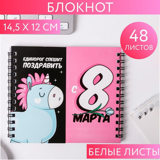 • Цена за 2 шт. Блокнот двойной Единорог. 8 марта
