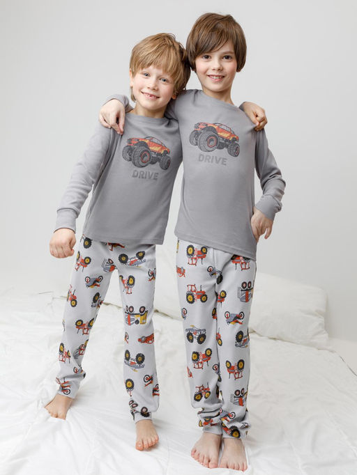 Трикотажная пижама из натурального хлопка. Джемпер с длинными рукавами с эластичными манжетами. У брюк эластичный пояс на резинке. Оригинальная набивка и принт выполнены из стойких, гипоаллергенных текстильных красителей. Пижама сохраняет цвет и форму после многократных стирок. Все трикотажные полотна производятся в соответствии с нормами Швейцарского сертификата ЭкоТекс.. Состав: 100% хлопок