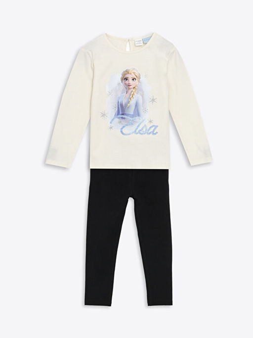 Elsa Bask?l? K?z ?ocuk Bluz ve Tayt 2li