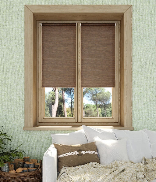 Рулонная штора "Саванна" (цвета соломка зебрано и соломка мокка) с плетеной текстурой внесут свою атмосферу в любой современный интерьер в эко стиле, также прекрасно оформят окна в городской квартире.
