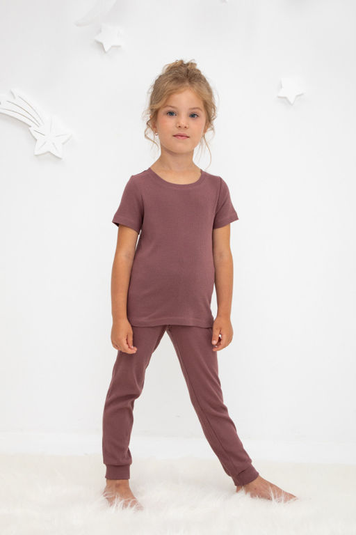 Брюки для девочки из эластичного трикотажа в рубчик, произведённого из натурального хлопка. Пояс на резинке. Изделие сохраняет цвет и форму после многократных стирок. Все трикотажные полотна производятся в соответствии с нормами Швейцарского сертификата ЭкоТекс.­