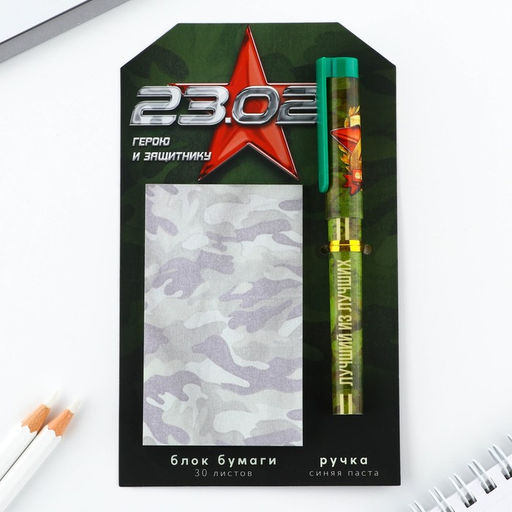 • Подарочный набор ручка шариковая и блок бумаги 30 л «23 февраля. Герой и защитник»