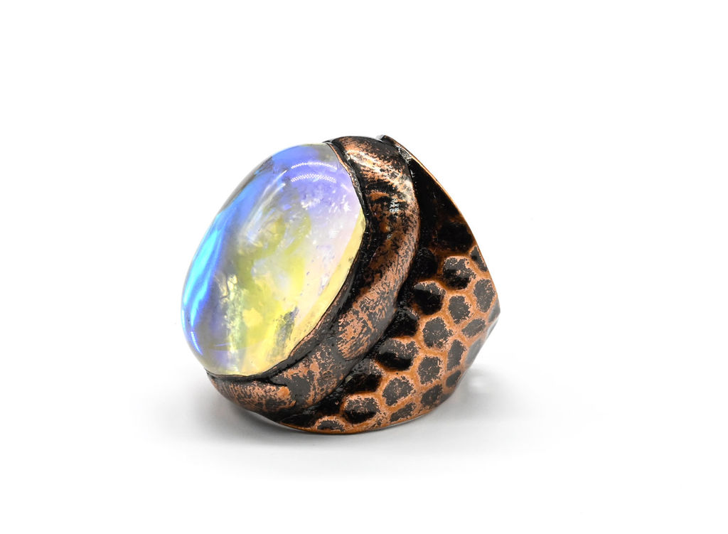 • Кольцо с опалом искусственным 19*29мм, размер 17,5 Радуга камня