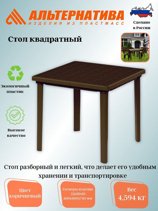 Стол квадратный, отличный выбор для приятного времяпрепровождения в саду или на природе.
