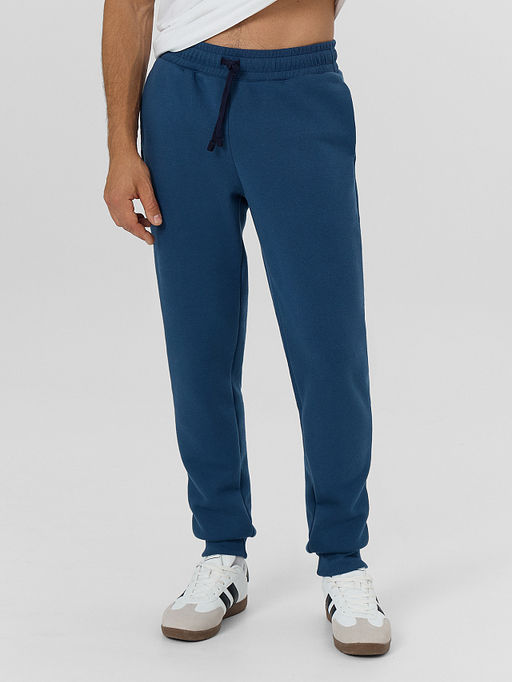 Стильные брюки из трикотажного футера с теплым подчесом. Силуэт зауженный, штанины с манжетами. Есть удобные боковые карманы. В поясе эластичная тесьма и шнурок-затяжка. Просто, комфортно, актуально!­