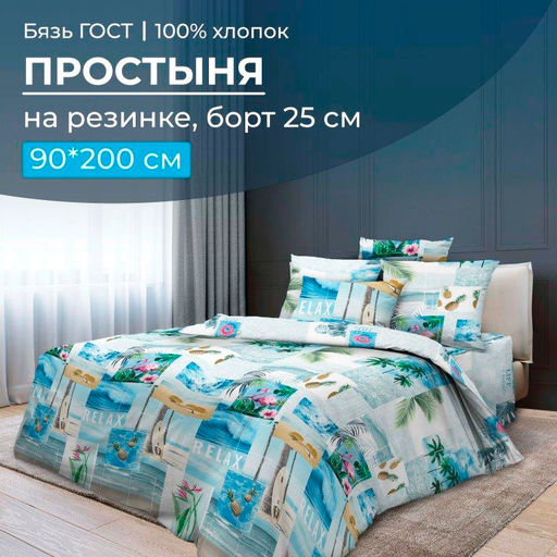 Артикул: Простыня на резинке 090*200 см, бязь ГОСТ, борт 25 см (Парадайз)