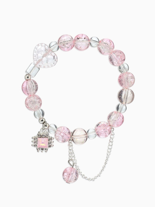 • Браслет с подвесками «Сахарный» ромб, сердечко, шар №10, d=6 см, бело-розовый в серебре