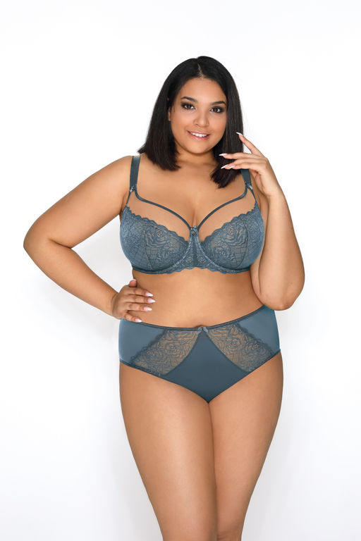 Трусики-слипы Asti с завышенной талией серого цвета декорированы вставками из прозрачной сетки с цветочной вышивкой­