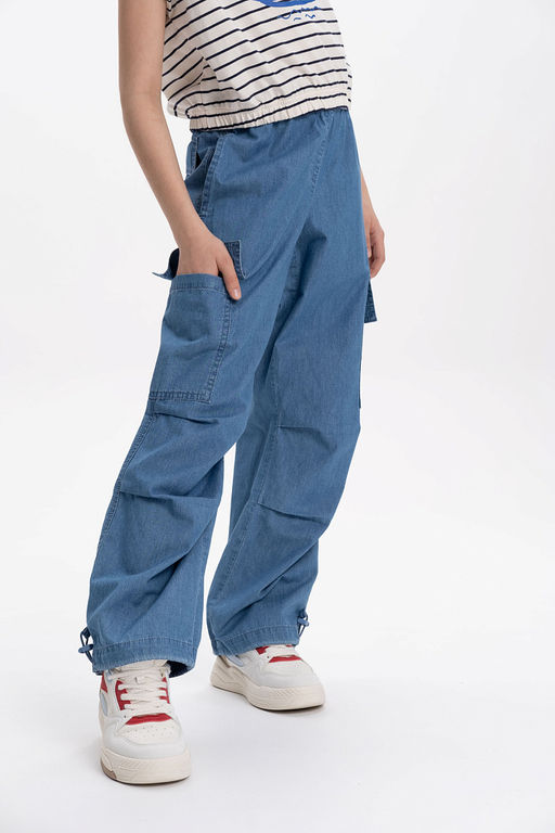 Стильные джинсы карго на резинке - модный и удобный предмет гардероба для подростка на весну и лето. Широкие джинсы оверсайз с завышенной посадкой сочетают в себе функциональность и удобство для повседневной жизни.