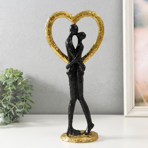 Фигурка полистоун Абстракция. Поцелуй у сердца, золото с чёрным, 14.5?9?32 см