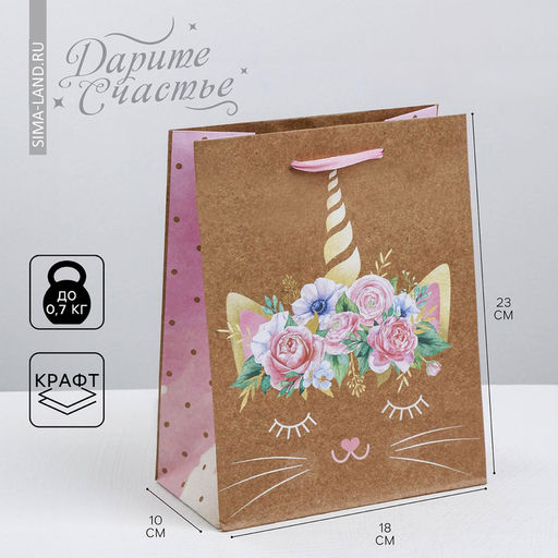 • Цена за 2 шт. Пакет подарочный крафтовый, упаковка, Мяу, MS 18?23?10 см