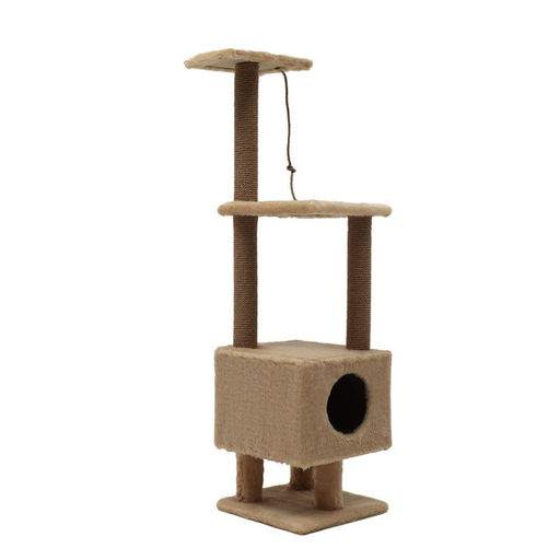 • Комплекс для кошек с когтеточкой, с домиком и 2 полками, 37×37×120 см, бежевый