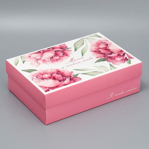 Набор: Нет. Форма: Прямоугольная. Плотность, г/м²: 250. Допустимый вес вложения, г: 700. Тематика: Цветочно-растительная. Символ года: Нет. Тематика праздника: 8 Марта. Тематика праздника: День матери. Вид: Складные коробки. Размер: Большой (25-45 см). Бесплатная доставка: Да. Наша разработка: Да.